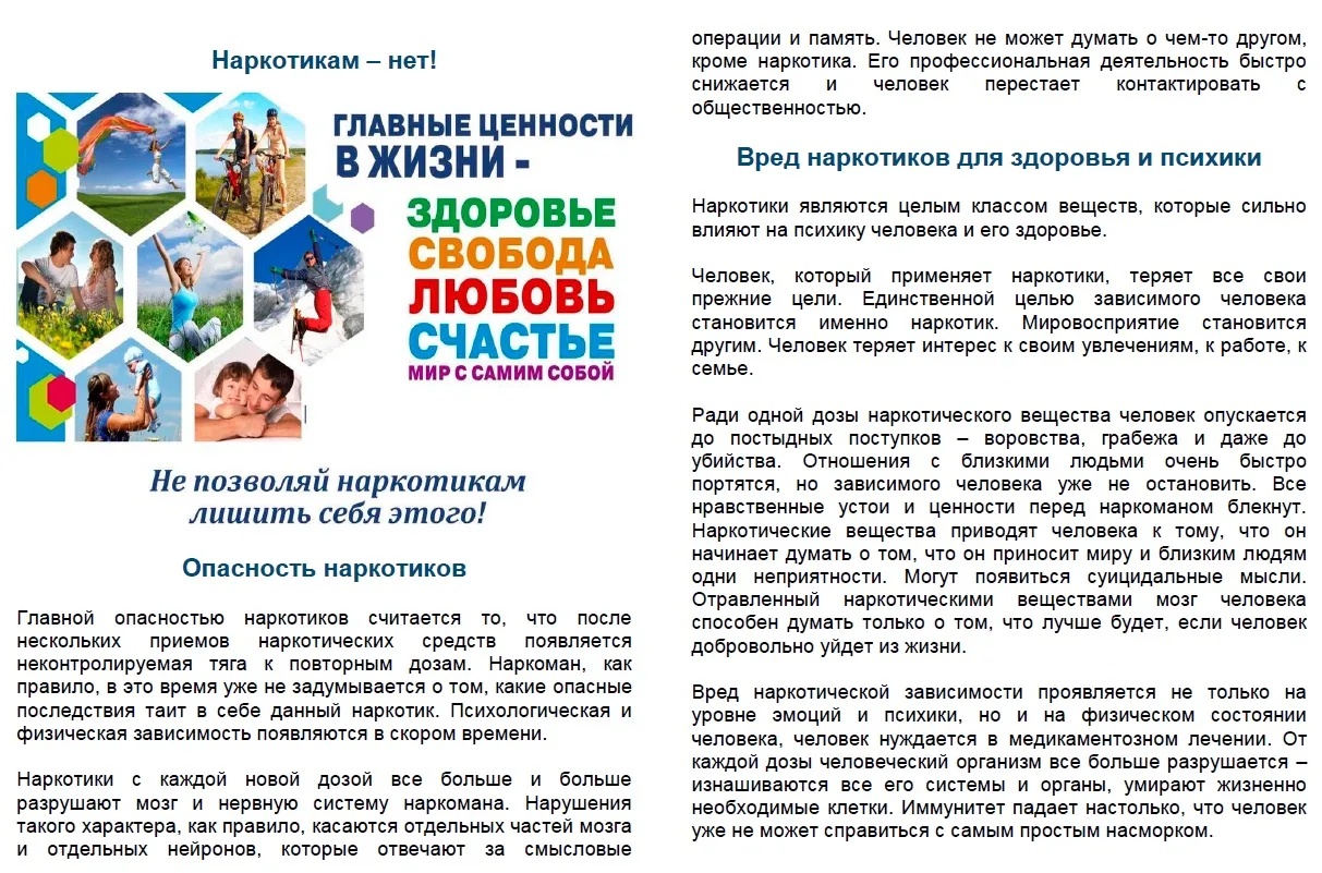 01.04.2026Наркотики, алкоголь, вейпы, «энергетики» — всё это психоактивные вещества (ПАВ). Они крадут главное — способность выбирать. Сначала ты выбираешь «попробовать». Потом вещество выбирает, когда тебе вставать, о чём думать и кто твои «друзья». Что ты теряешь на самом деле: Память и концентрацию (учёба станет пыткой) Свою внешность (акне, отёки, ломкие волосы) Деньги (зависимость дороже айфона) Свободу (раньше или позже — уголовная статья) Самое опасное в ПАВ — иллюзия контроля. «Я брошу в любой момент» — так говорят те, кто уже не бросил. Круто быть здоровым. Круто быть свободным. Круто управлять своей жизнью самому. Если предлагают — скажи «нет». Если страшно отказаться — уйди. Если нужна помощь — попроси у взрослого, которому доверяешь. Ты не один. #ПрофилактикаПАВ #ТвойВыбор #СкажиНет #ЗОЖ #МыЗаЗдоровоеБудущее